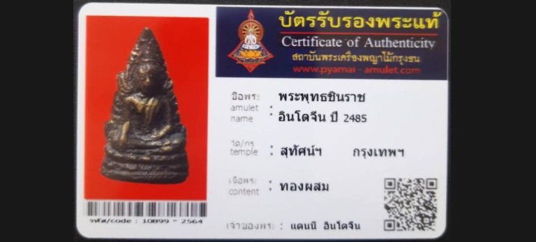 บัตรที่ผ่านการรับรองไม่มีหมวดหมู่ พระพุทธชินราชอินโดจีน วัดสุทัศน์ฯ กรุงเทพฯ เจ้าของพระ คุณแดนนี่ รหัสบัตร 10899 – 2564
