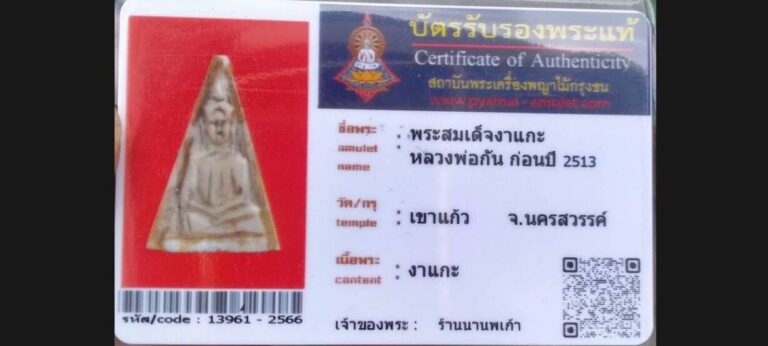 ไม่มีหมวดหมู่ พระสมเด็จงาแกะ หลวงพ่อกัน วัดเขาแก้ว จ.นครสวรรค์ เจ้าของพระ ร้านนานพเก้า รหัสบัตร 13961 – 2566
