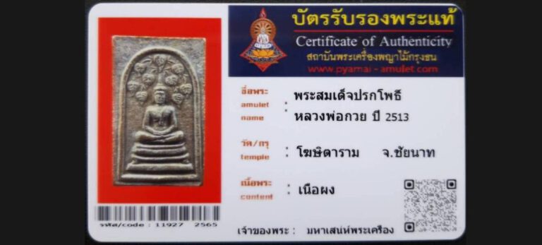 บัตรที่ผ่านการรับรองไม่มีหมวดหมู่ พระสมเด็จปรกโพธิ์ หลวงพ่อกวย วัดโฆษิตาราม จ.ชัยนาท เจ้าของพระ มหาเสน่ห์พระเครือง รหัสบัตร 11927 – 2565