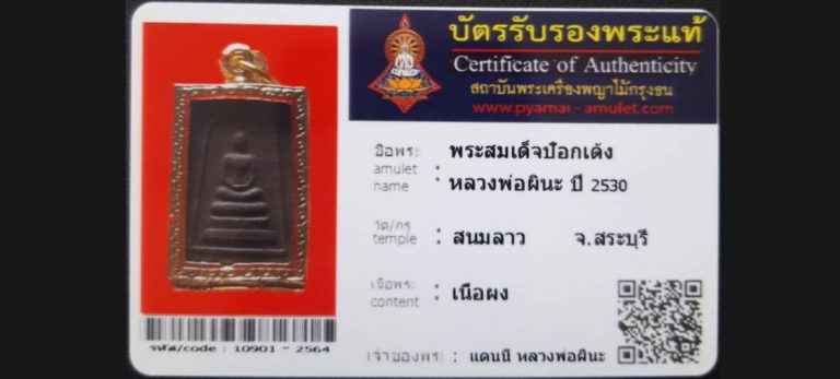 บัตรที่ผ่านการรับรองไม่มีหมวดหมู่ พระสมเด็จป้อกเด้ง หลวงพ่อผินะ วัดสนมลาว จ.สระบุรี เจ้าของพระ คุณแดนนี่ รหัสบัตร 10901 – 2564