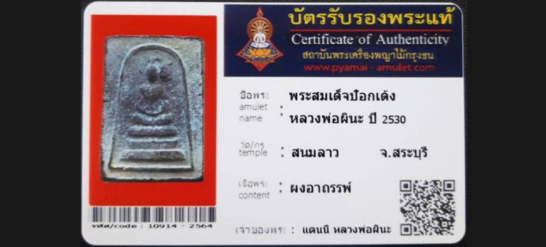 บัตรที่ผ่านการรับรองไม่มีหมวดหมู่ พระสมเด็จป้อกเด้ง หลวงพ่อผินะ วัดสนมลาว จ.สระบุรี เจ้าของพระ คุณแดนนี่ รหัสบัตร 10914 – 2564