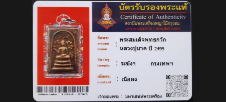 บัตรที่ผ่านการรับรองไม่มีหมวดหมู่ พระสมเด็จพุทธกวัก หลวงปู่นาค วัดระฆังฯ กรุงเทพฯ เจ้าของพระ มหาเสนห์พระเครือง รหัสบัตร 11914 – 2565