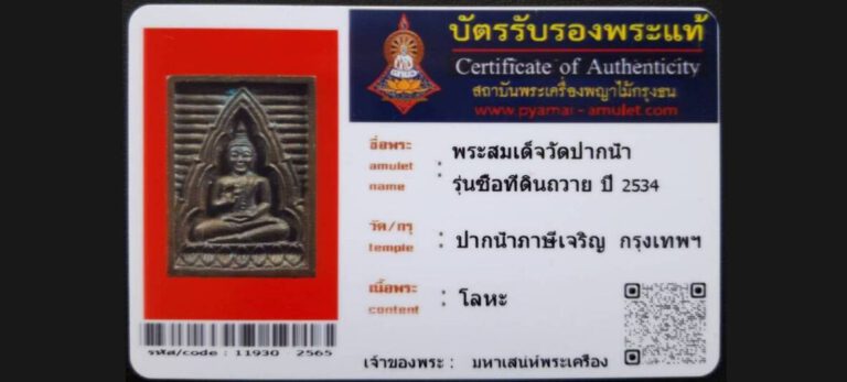 บัตรที่ผ่านการรับรองไม่มีหมวดหมู่ พระสมเด็จวัดปากน้ำ รุ่นซื้อที่ดินถวาย วัดปากน้ำภาษีเจริญ กรุงเทพฯ เจ้าของพระ มหาเสน่ห์พระเครือง รหัสบัตร 11930 – 2565