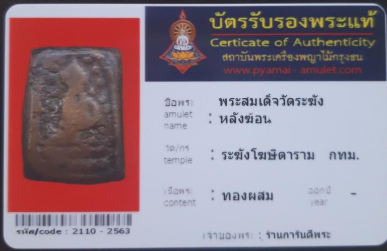 บัตรรับรองพระแท้ที่ผ่านการรับรองจากชมรมพระเครื่องพญาไม้กรุงธน