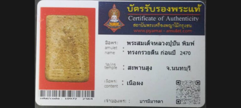 ไม่มีหมวดหมู่ พระสมเด็จหลวงปู่ปัน พิมพ์ทรงกรวยตื้น วัดสะพานสูง จ.นนทบุรี เจ้าของบัตร บารมีมารดา รหัสบัตร 10972 – 2564