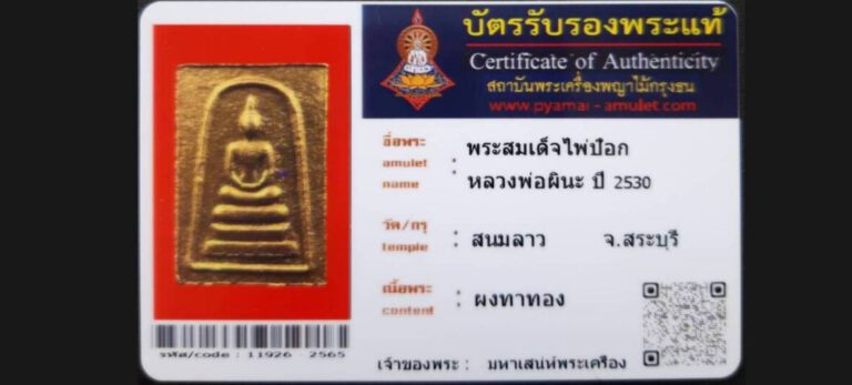 บัตรที่ผ่านการรับรองไม่มีหมวดหมู่ พระสมเด็จไพ่ป้อก หลวงพ่อผินะ วัดสนมลาว จ.สระบุรี เจ้าของพระ มหาเสน่ห์พระเครือง รหัสบัตร 11926 – 2565