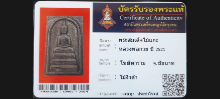 บัตรที่ผ่านการรับรองไม่มีหมวดหมู่ พระสมเด็จไม้แกะ หลวงพ่อกวย วัดโฆษิตาราม จ.ชัยนาท เจ้าของพระ คุณเจษฎา ประชาโรจน์ รหัสบัตร 10461 – 2564