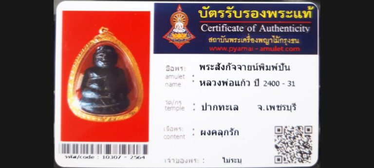 บัตรที่ผ่านการรับรองไม่มีหมวดหมู่ พระสังกัจจายน์พิมพ์ปั้น หลวงพ่อแก้ว วัดปากทะเล จ.เพชรบุรี เจ้าของพระ ไม่ระบุชื่อ รหัสบัตร 10307 – 2564