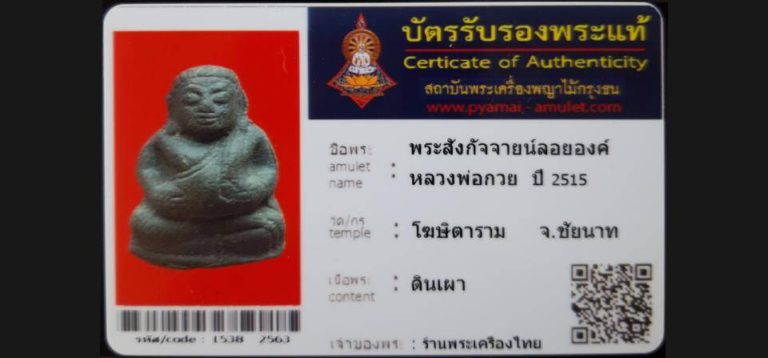 บัตรที่ผ่านการรับรองไม่มีหมวดหมู่ พระสังกัจจายน์ลอยองค์ หลวงพ่อกวย วัดโฆษิตาราม จ.ชัยนาท เจ้าของพระ ร้านพระเครื่องไทย รหัสบัตร 1538
