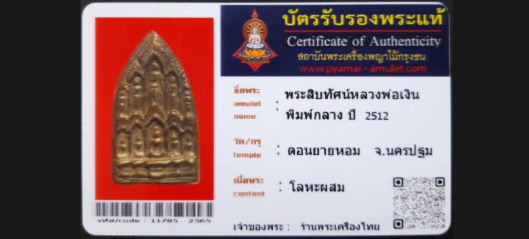 บัตรที่ผ่านการรับรองไม่มีหมวดหมู่ พระสิบทัศน์หลวงพ่อเงินพิมพ์กลาง วัดดอนยายหอม จ.นครปฐม เจ้าของพระ ร้านพระเครื่องไทย รหัสบัตร 11785 – 2565