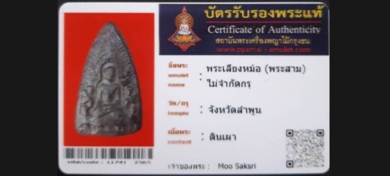 บัตรที่ผ่านการรับรองไม่มีหมวดหมู่ พระเลียงหม้อ(พระสาม) ไม่จำกัดกรุ จังหวัดลำพูน เจ้าของพระ Mr.moo saksri รหัสบัตร 11741 – 2565