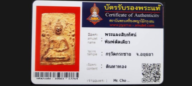 บัตรที่ผ่านการรับรองไม่มีหมวดหมู่ พระแผงสิบทิศ พิมพ์ตัดเดียว กรุวัดกระชาย จ.อยุธยา เจ้าของพระ Mr.Cho.. รหัสบัตร 10603 – 17764