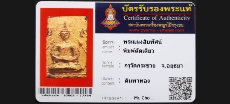 บัตรที่ผ่านการรับรองไม่มีหมวดหมู่ พระแผงสิบทิศ พิมพ์ตัดเดียว กรุวัดกระชาย จ.อยุธยา เจ้าของพระ Mr.Cho.. รหัสบัตร 10602 – 17764