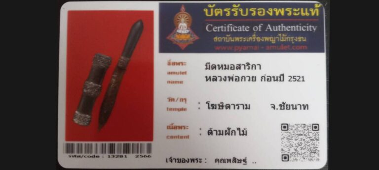 ไม่มีหมวดหมู่ มีดหมอสาริกา หลวงพ่อกวย วัดโฆษิตาราม จ.ชัยนาท เจ้าของพระ คุณพสิษฐ์พล พรรณพัฒน์ รหัสบัตร 13281 – 2566