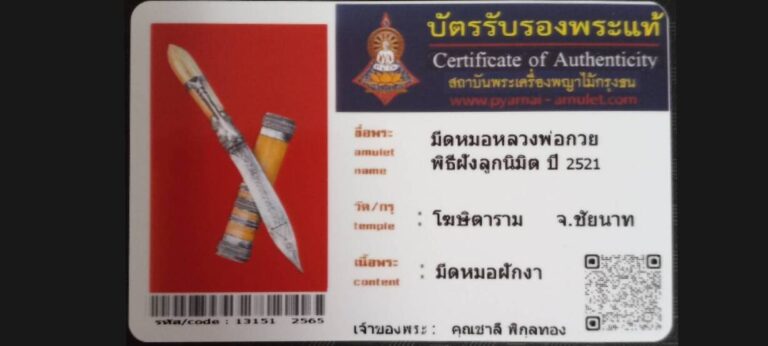 ไม่มีหมวดหมู่ มีดหมอหลวงพ่อกวย วัดโฆษิตาราม จ.ชัยนาท เจ้าของพระ คุณชาลี พิกุลทอง รหัสบัตร 13151 – 2565