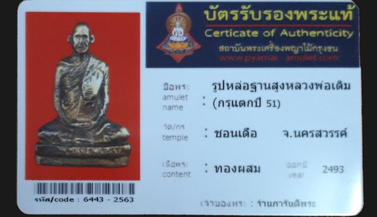 บัตรที่ผ่านการรับรองไม่มีหมวดหมู่ รูปหล่อฐานสูง หลวงพ่อเดิม ออกวัดชอนเดื่อ (แตกกรุปี 51) จ.นครสวรรค์ เจ้าของพระ ร้านการันตีพระ รหัสบัตร 6443-2563