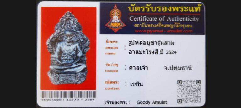 บัตรที่ผ่านการรับรอง (ซ่อน) รูปหล่อบูชารุ่นสาม อาแปะโรงสี วัดศาลเจ้า จ.ปทุมธานี เจ้าของพระ Goody Amulet รหัสบัตร 11579 – 2564
