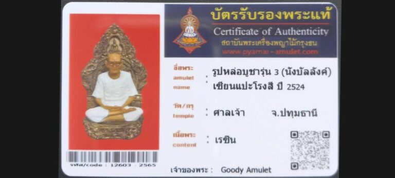 บัตรที่ผ่านการรับรอง (ซ่อน) รูปหล่อบูชารุ่น3นั่งบัลลังค์ อาแปะโรงสี วัดศาลเจ้า จ.ปทุมธานี เจ้าของพระ Goody Amulet รหัสบัตร 12603 – 2565
