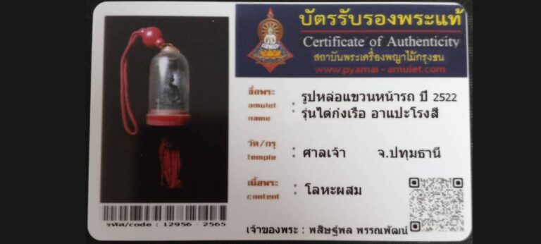 ไม่มีหมวดหมู่ รูปหล่อแขวนหน้ารถ รุ่นไต่ก๋งเรือ อาแปะโรงสี วัดศาลเจ้า จ.ปทุมธานี เจ้าของพระ คุณพสิษฐ์พล พรรณพัฒน์ รหัสบัตร 12956 – 2565