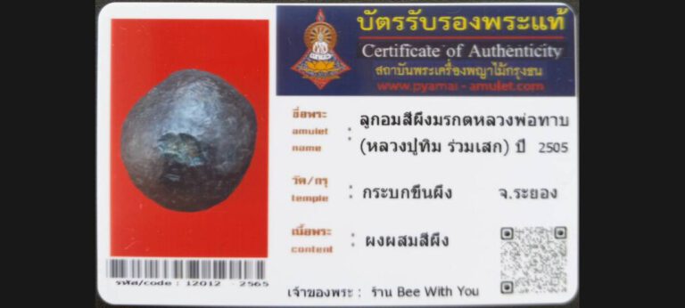 บัตรที่ผ่านการรับรองไม่มีหมวดหมู่ ลูกอมสีผึ้งมรกตหลวงพ่อทาบ (หลวงปู่ทิม ร่วมเสก) วัดกระบกขึ้นผึ้ง จ.ระยอง เจ้าของพระ ร้าน Bee With You รหัสบัตร 12012 – 2565