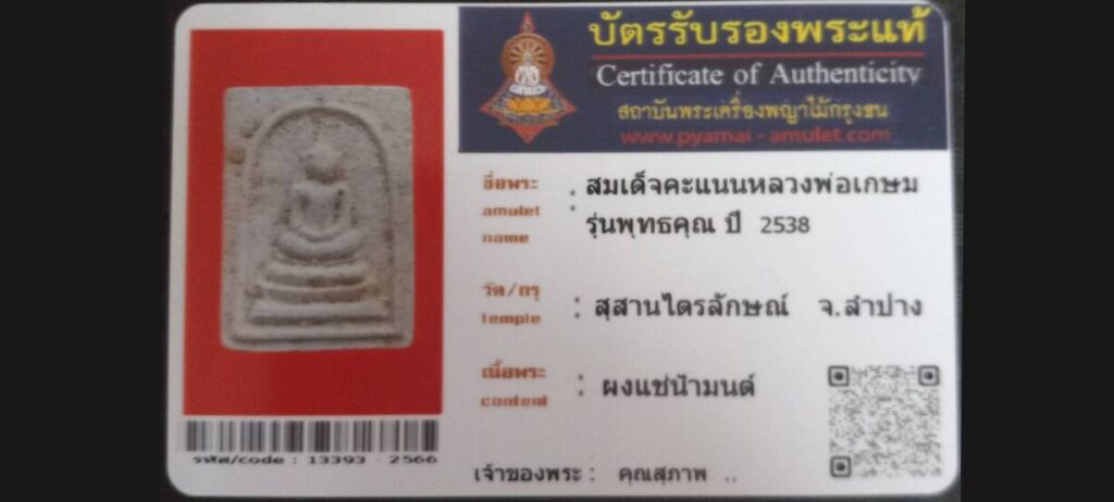 สมเด็จคะแนนหลวงพ่อเกษม รุ่นพุทธคุณ วัดสุสานไตรลักษณ์ จ.ลำปาง