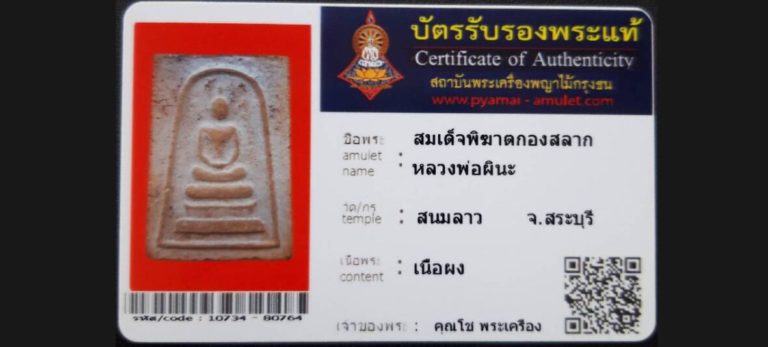 บัตรที่ผ่านการรับรองไม่มีหมวดหมู่ สมเด็จพิฆาตกองสลาก หลวงพ่อผินะ วัดสนมลาว จ.สระบุรี เจ้าของพระ คุณโช พระเครื่อง รหัสบัตร 10734 – 80764