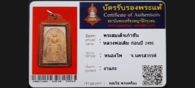 บัตรที่ผ่านการรับรองไม่มีหมวดหมู่ สมเด็จเก้าชั้นหลวงพ่อเดิม วัดหนองโพ จ.นครสวรรค์ เจ้าของพระ คุณโช พระเครื่อง รหัสบัตร 10718 – 70764