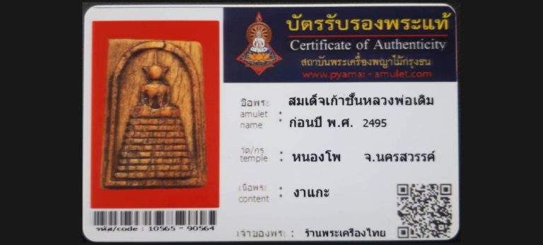 บัตรที่ผ่านการรับรองไม่มีหมวดหมู่ สมเด็จเก้าชั้นหลวงพ่อเดิม วัดหนองโพ จ.นครสวรรค์ เจ้าของพระ ร้านพระเครื่องไทย รหัสบัตร 10565 – 2564