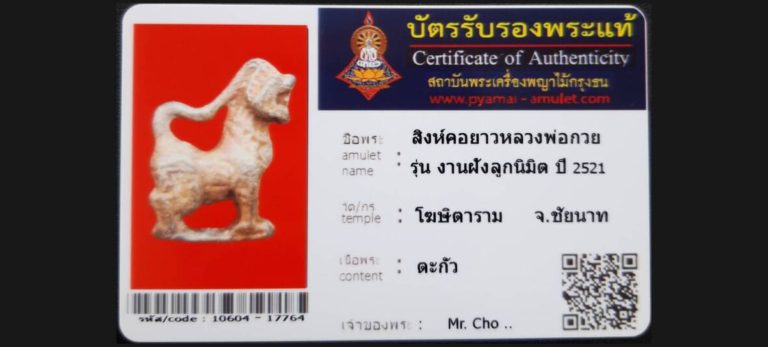 • Next → สิงห์หลวงพ่อกวย ยุคต้น ก่อนปี พ.ศ 2521 วัดโฆษิตาราม จ.ชัยนาท