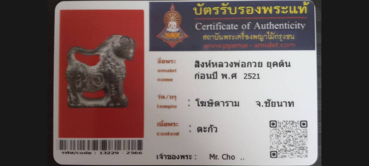 สิงห์หลวงพ่อกวยยุคต้น วัดโฆษิตาราม จ.ชัยนาท