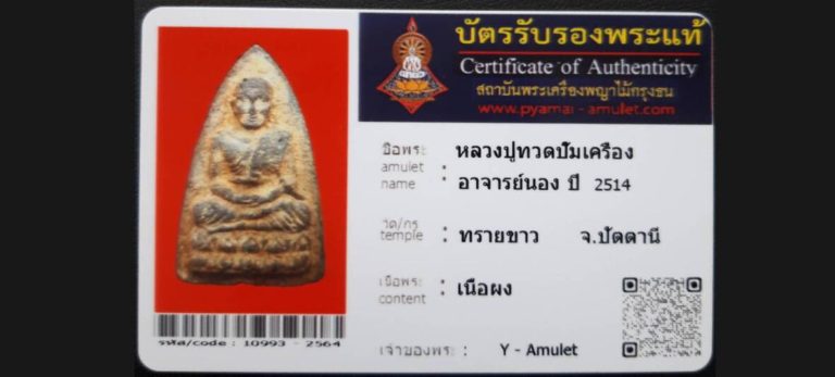 บัตรที่ผ่านการรับรองไม่มีหมวดหมู่ หลวงปู่ทวดปั้มเครือง อาจารย์นอง วัดทรายขาว จ.ปัตตานี เจ้าของพระ Y – Amulet รหัสบัตร 10993 – 2564