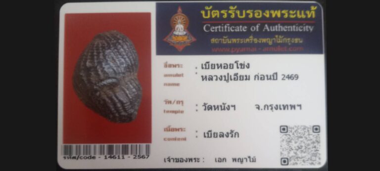 ไม่มีหมวดหมู่ เบี้ยหอยโข่ง หลวงปู่เอี่ยม วัดหนังฯ จ.กรุงเทพฯ เจ้าของพระ เอกพญาไม้ รหัสบัตร 14611 – 2567