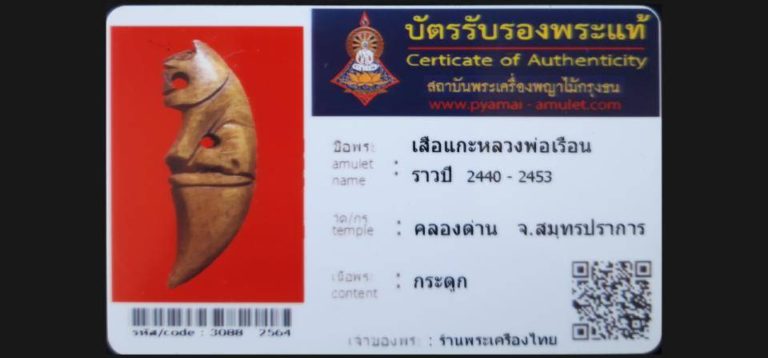 บัตรที่ผ่านการรับรองไม่มีหมวดหมู่ เสีอแกะหลวงพ่อเรือน วัดคลองด่าน จ.สมุทรปราการ เจ้าของพระ ร้านพระเครื่องไทย รหัสบัตร 3088-2564
