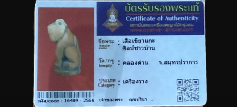 ไม่มีหมวดหมู่ เสือเขี้ยวแกะ ศิลปชาวบ้าน วัดคลองด่าน จ.สมุทรปราการ เจ้าของพระ คุณปริณา รหัสบัตร 16489 – 2568