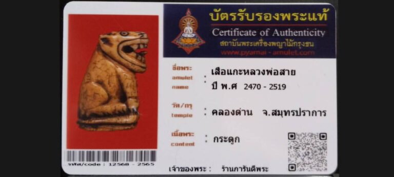 ไม่มีหมวดหมู่ เสือแกะหลวงพ่อสาย วัดคลองด่าน จ.สมุทรปราการ เจ้าของพระ ร้านการันตีพระ รหัสบัตร 12568 – 2565