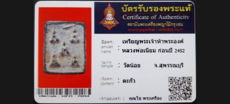 เหรียญพระเจ้าห้าพระองค์ หลวงพ่อเนียม วัดน้อย จ.สุพรรณบุรี