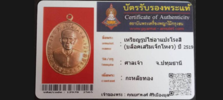 เหรียญรูปไข่รุ่นแรกแปะโรงสี (บล็อคเสริม อาเจ็กโหงว) วัดศาลเจ้า จ.ปทุมธานี