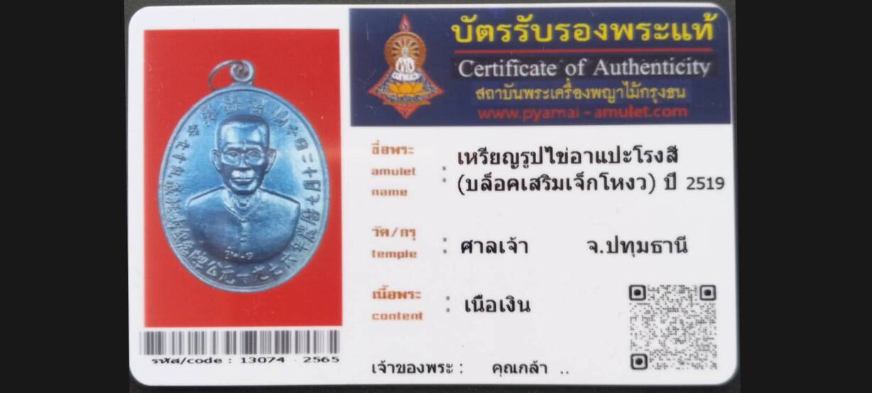 • Next → เหรียญรูปไข่รุ่นแรกแปะโรงสี (บล็อคเสริม อาเจ็กโหงว) วัดศาลเจ้า จ.ปทุมธานี