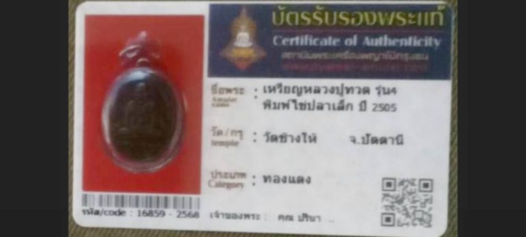 ไม่มีหมวดหมู่ เหรียญหลวงปู่ทวด พิมพ์ไข่ปลาเล็ก วัดช้างให้ จ.ปัตตานี เจ้าของพระ คุณปรินา.. รหัสบัตร 16859 – 2568