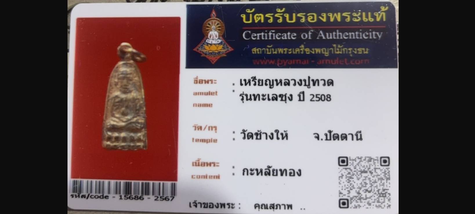 ไม่มีหมวดหมู่ เหรียญหลวงปู่ทวด รุ่นทะเลซุง วัดช้างให้ จ.ปัตตานี 14/09/2025 Pyamai Amulet เจ้าของพระ คุณสุภาพ รหัสบัตร 15686 – 2567