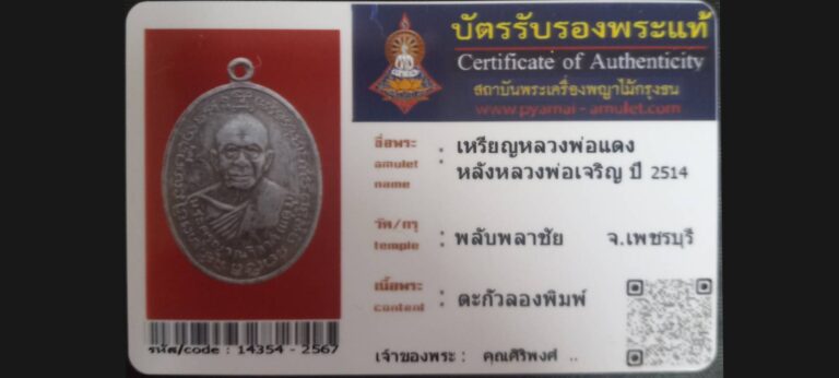 ไม่มีหมวดหมู่ เหรียญหลวงพ่อแดงหลังหลวงพ่อเจริญ วัดพลับพลาชัย จ.เพชรบุรี เจ้าของพระ คุณศิริพงศ์.. รหัสบัตร 14354 – 2567