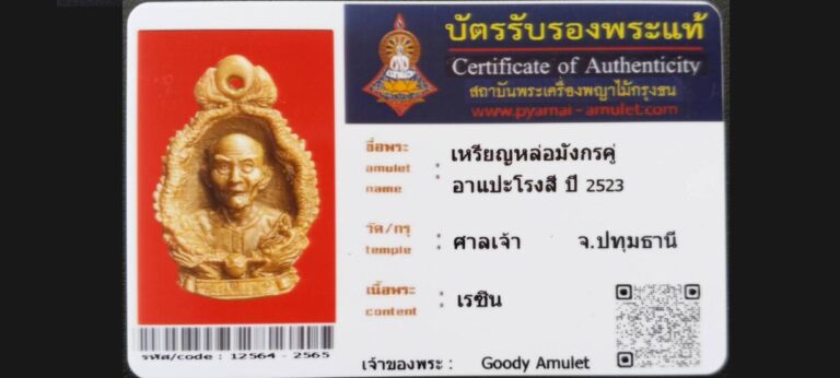 บัตรที่ผ่านการรับรอง (ซ่อน) เหรียญหล่อมังกรคู่ อาแปะโรงสี วัดศาลเจ้า จ.ปทุมธานี เจ้าของพระ Goody Amulet รหัสบัตร 12564 – 2565