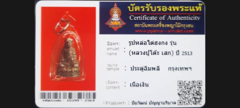 บัตรที่ผ่านการรับรองไม่มีหมวดหมู่ เหรียญหล่อไต๋ฮงกง รุ่น(หลวงปู่โต๊ะเสก) วัดประดู่ฉิมพลี กรุงเทพฯ เจ้าของพระ คุณปิยวัฒน์ ปัญญาบริบาล รหัสบัตร 10399 – 2564