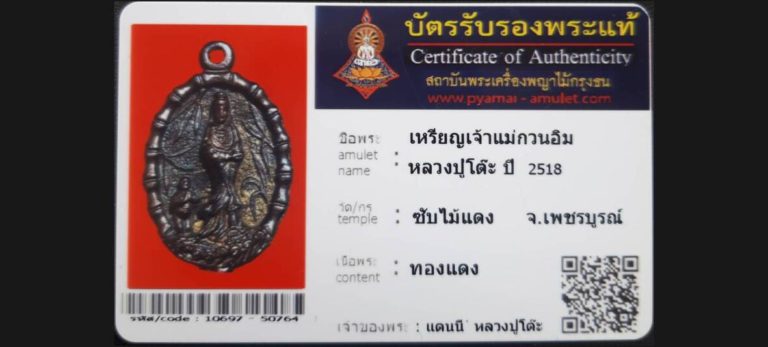 บัตรที่ผ่านการรับรองไม่มีหมวดหมู่ เหรียญเจ้าแม่กวนอิม หลวงปู่โต๊ะ วัดซับไม้แดง จ.เพชรบูรณ์ เจ้าของพระ คุณแดนนี่ หลวงปู่โต๊ะ รหัสบัตร 10697 – 50764