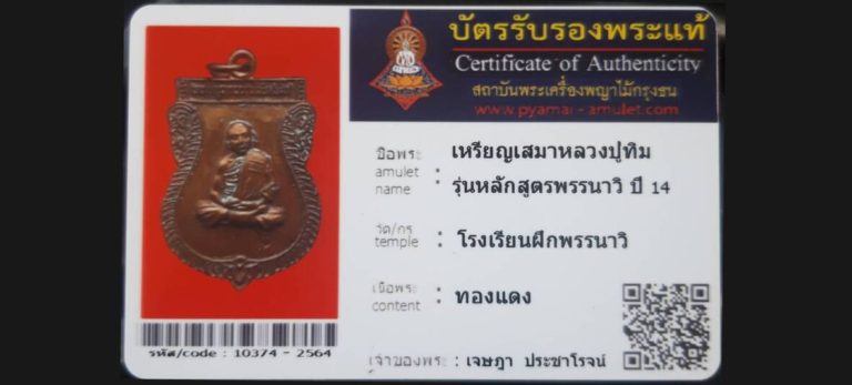 บัตรที่ผ่านการรับรองไม่มีหมวดหมู่ เหรียญเสมาหลวงปู่ทิม รุ่นหลักสูตรพรรณนาวิ โรงเรียนฝึกพรรนาวิ เจ้าของพระ คุณเจษฎา ประชาโรจน์ รหัสบัตร 10374 – 2564