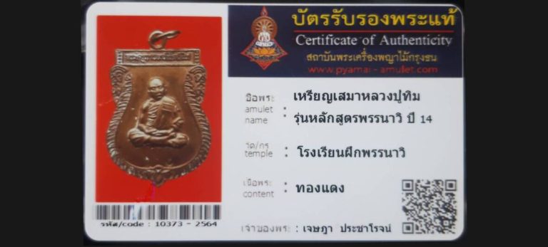บัตรที่ผ่านการรับรองไม่มีหมวดหมู่ เหรียญเสมาหลวงปู่ทิม รุ่นหลักสูตรพรรณนาวิ โรงเรียนฝึกพรรนาวิ เจ้าของพระ คุณเจษฎา ประชาโรจน์ รหัสบัตร 10373 – 2564