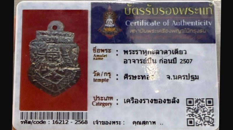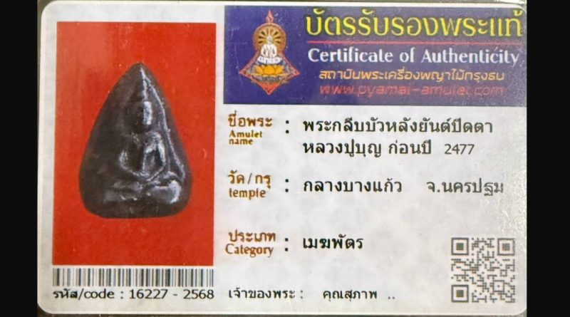 เจ้าของพระ มงคลธรรม รหัสบัตร 16638 – 2568