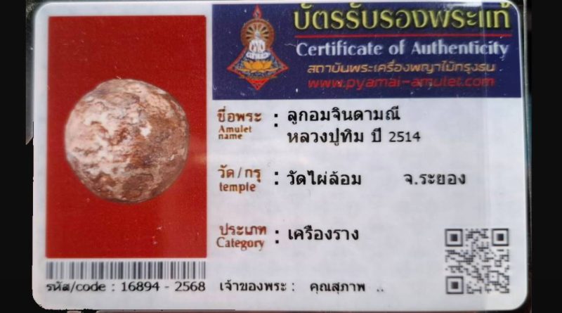 เจ้าของพระ คุณชัช รหัสบัตร 16915 – 2569