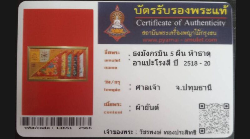 ดูเพิ่มเติมเจ้าของพระ คุณธนส แก้วงามอรุณ รหัสบัตร 12964 – 2566