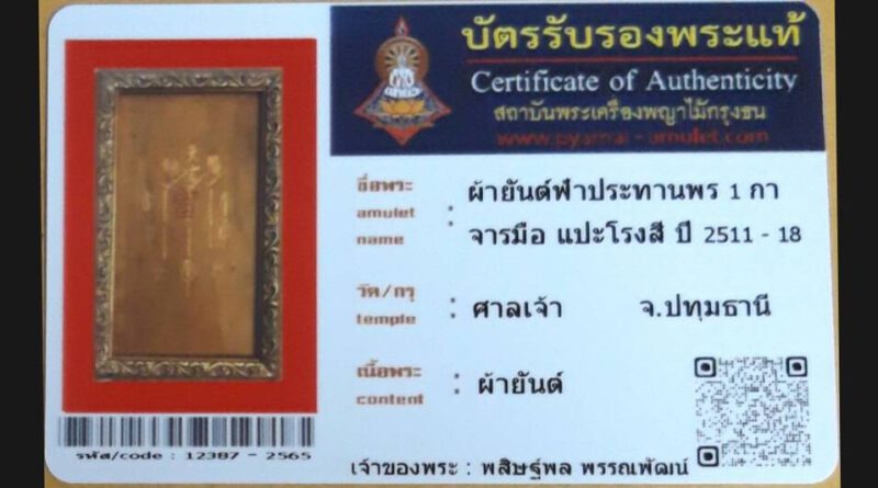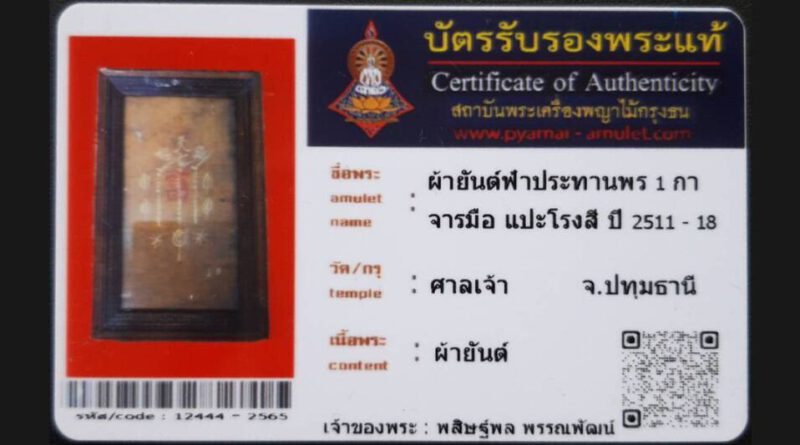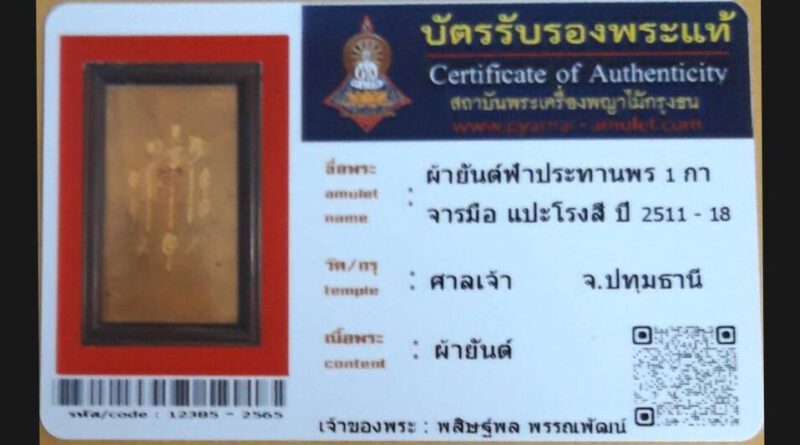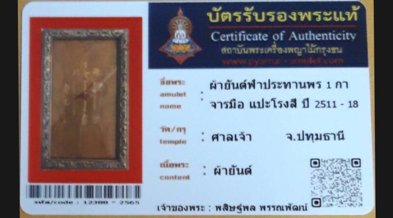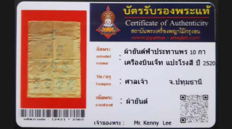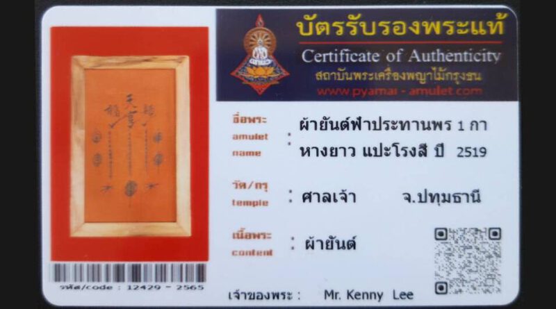 ดูเพิ่มเติมเจ้าของพระ Mr.Kenny Lee รหัสบัตร 12421 – 2565